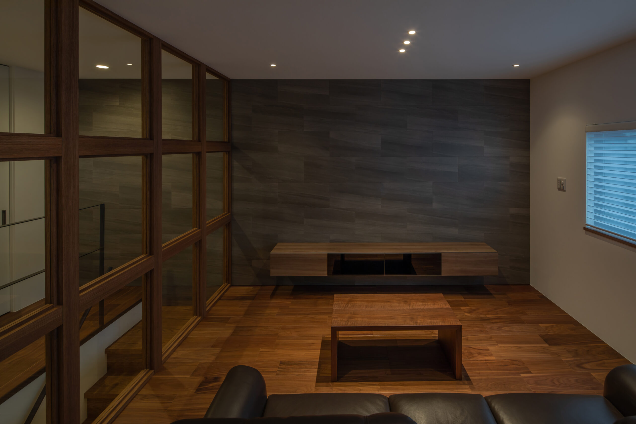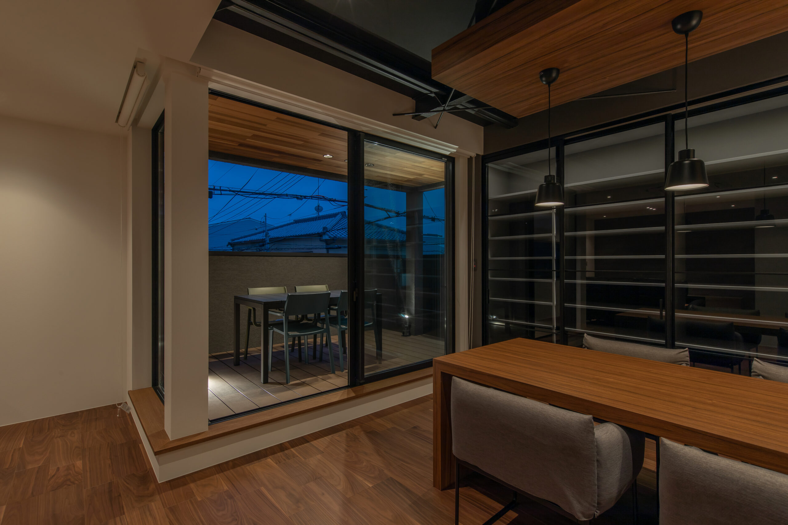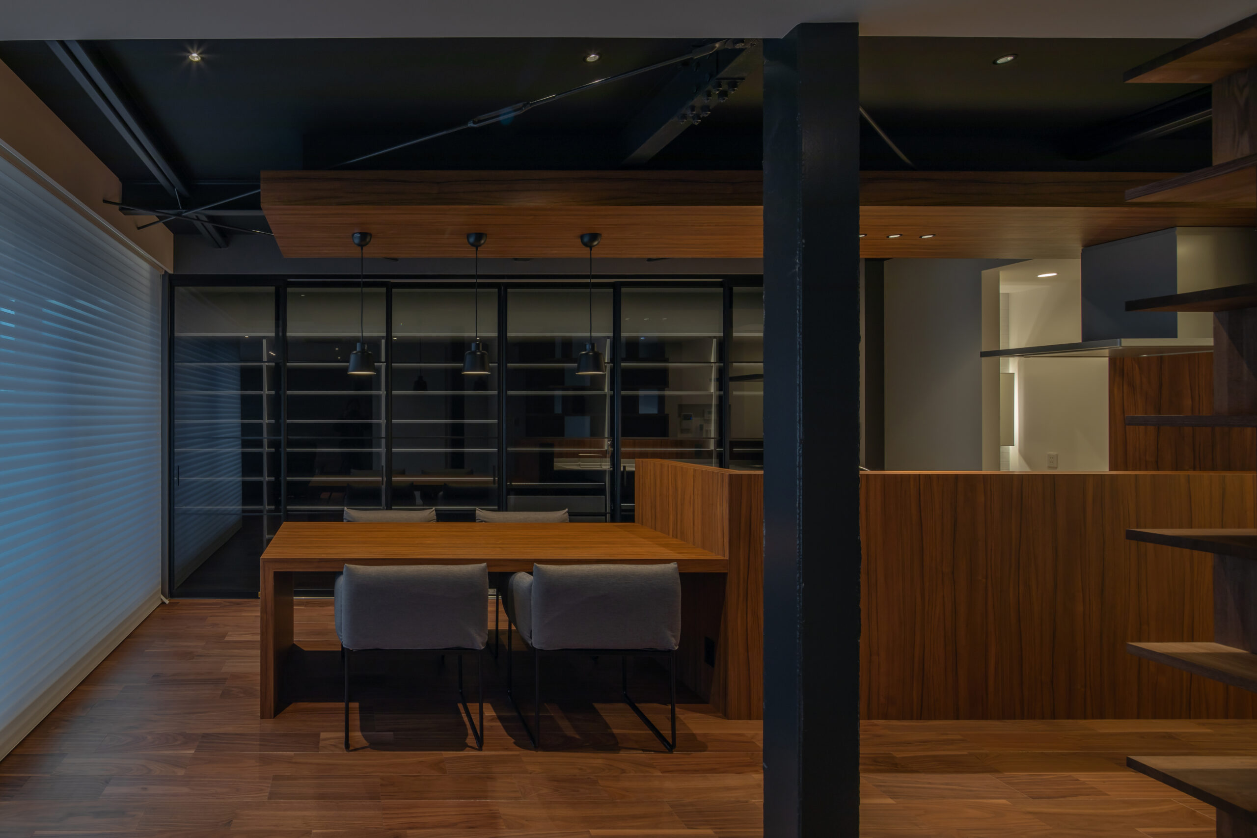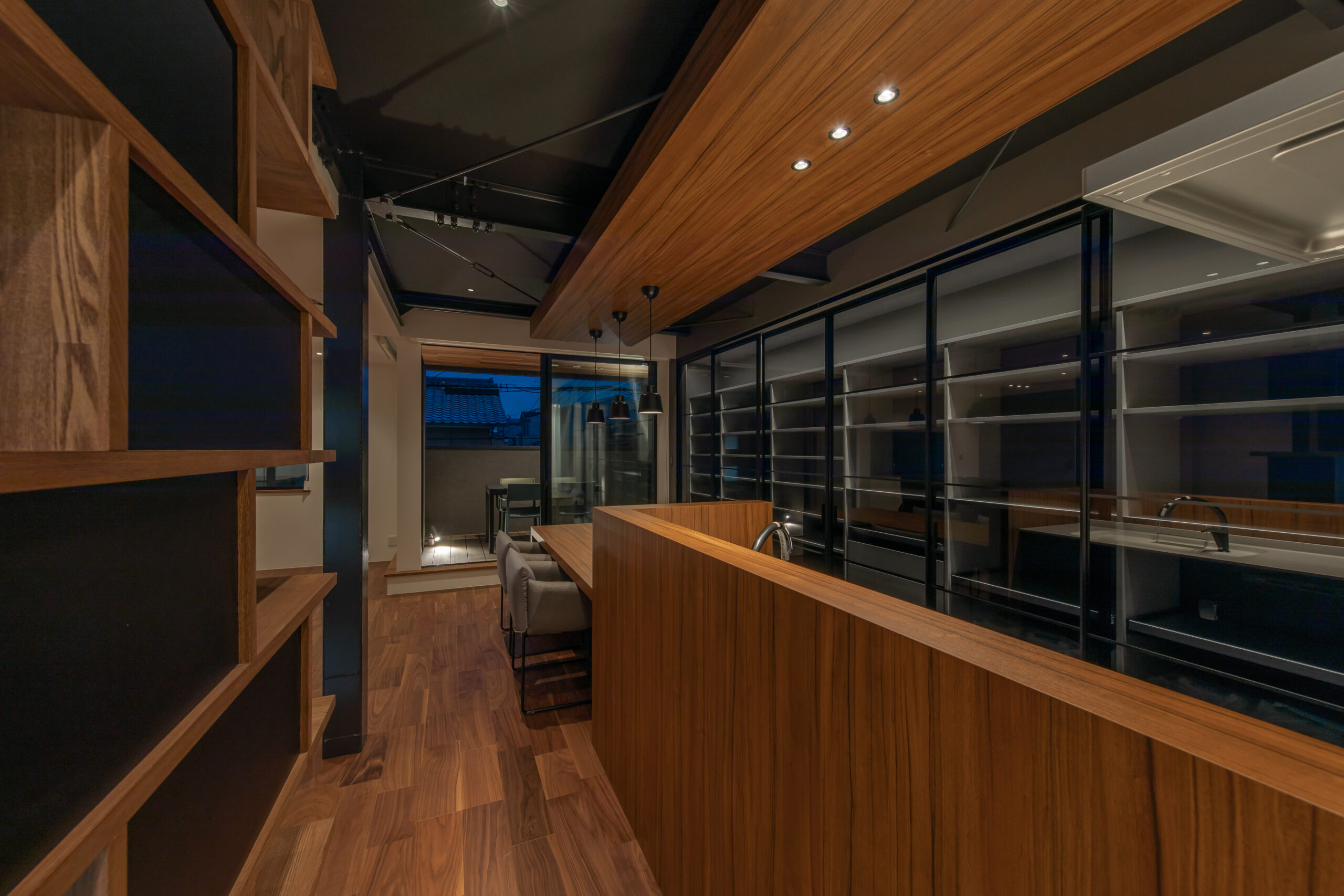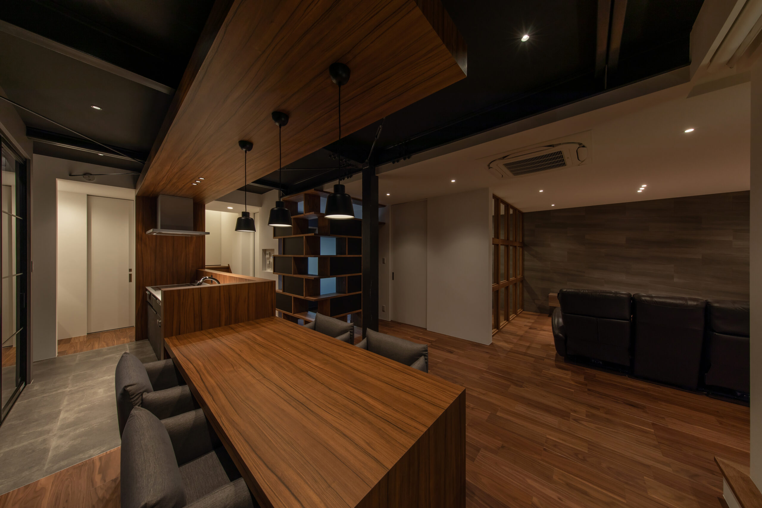 深いグレーの外壁が街並みに静かに馴染む、上質な一戸建て全面リノベーション。外観はシンプルでありながら、縦格子や軒天の木質が柔らかく印象を和らげ、現代的でありながらどこか懐かしさを感じさせます。室内はウォールナットの深い木目を基調に、ブラックのラインやスチール素材が空間を引き締める構成。天井や建具、造作家具に至るまでトーンを丁寧に揃え、光と影のコントラストが生み出す“静謐な美”が際立ちます。リビングからつながるバルコニーは、街の喧騒を忘れさせるようなプライベートテラス。夜は間接照明が木の質感を照らし、穏やかな時間を演出します。素材の重なりと光の陰影が織りなす、シンプルで深みのある、大人のための上質な住まいです。